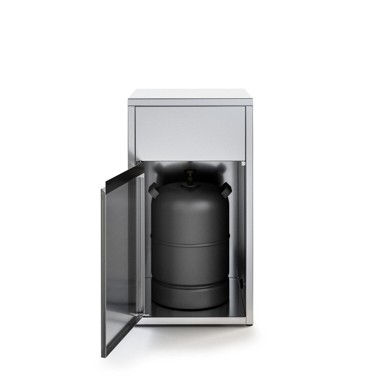 Der Küchenschrank Tank dient zur Aufnahme und sicheren Aufbewahrung Ihrer Gasflasche, die an Ihren Gas Grill Modul angeschlossen ist.